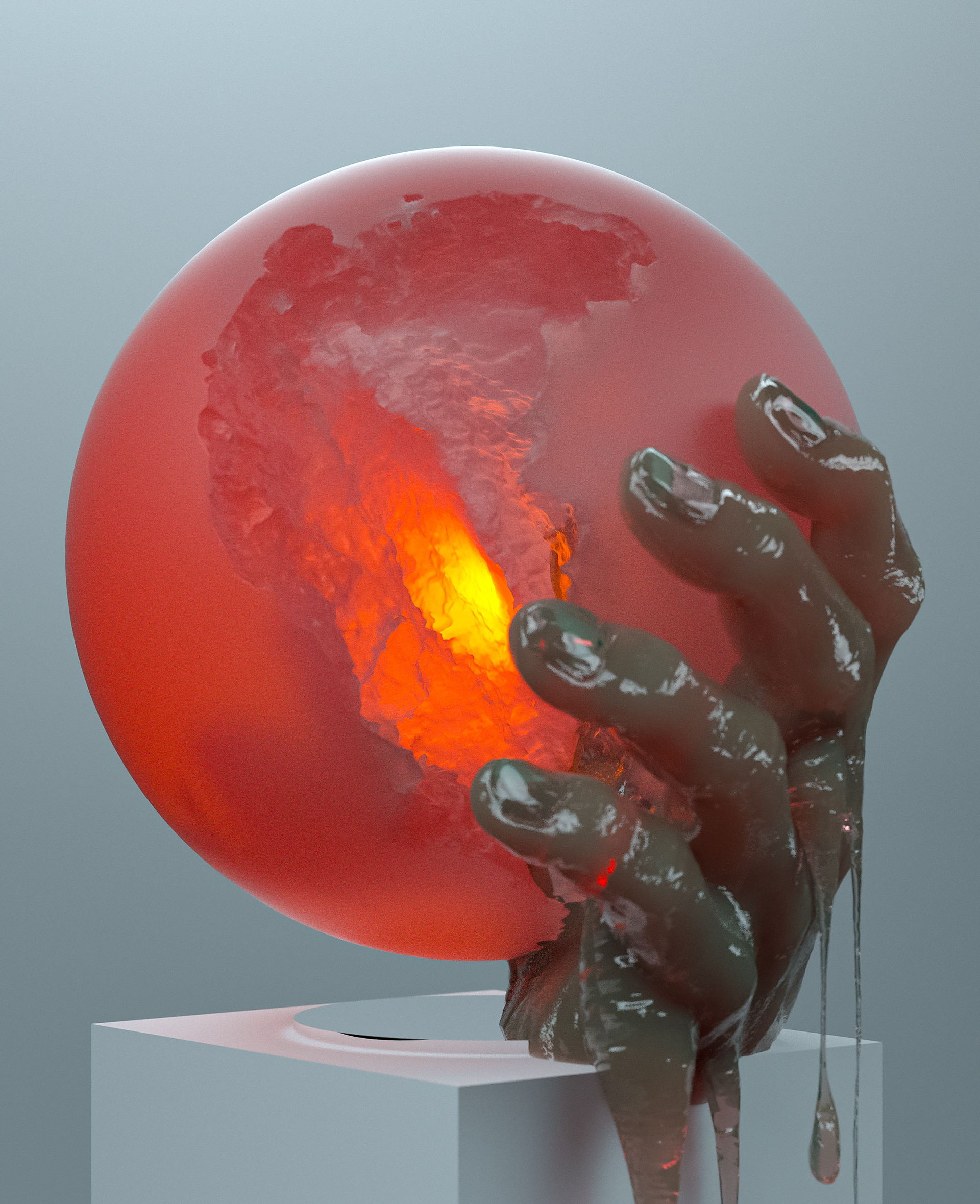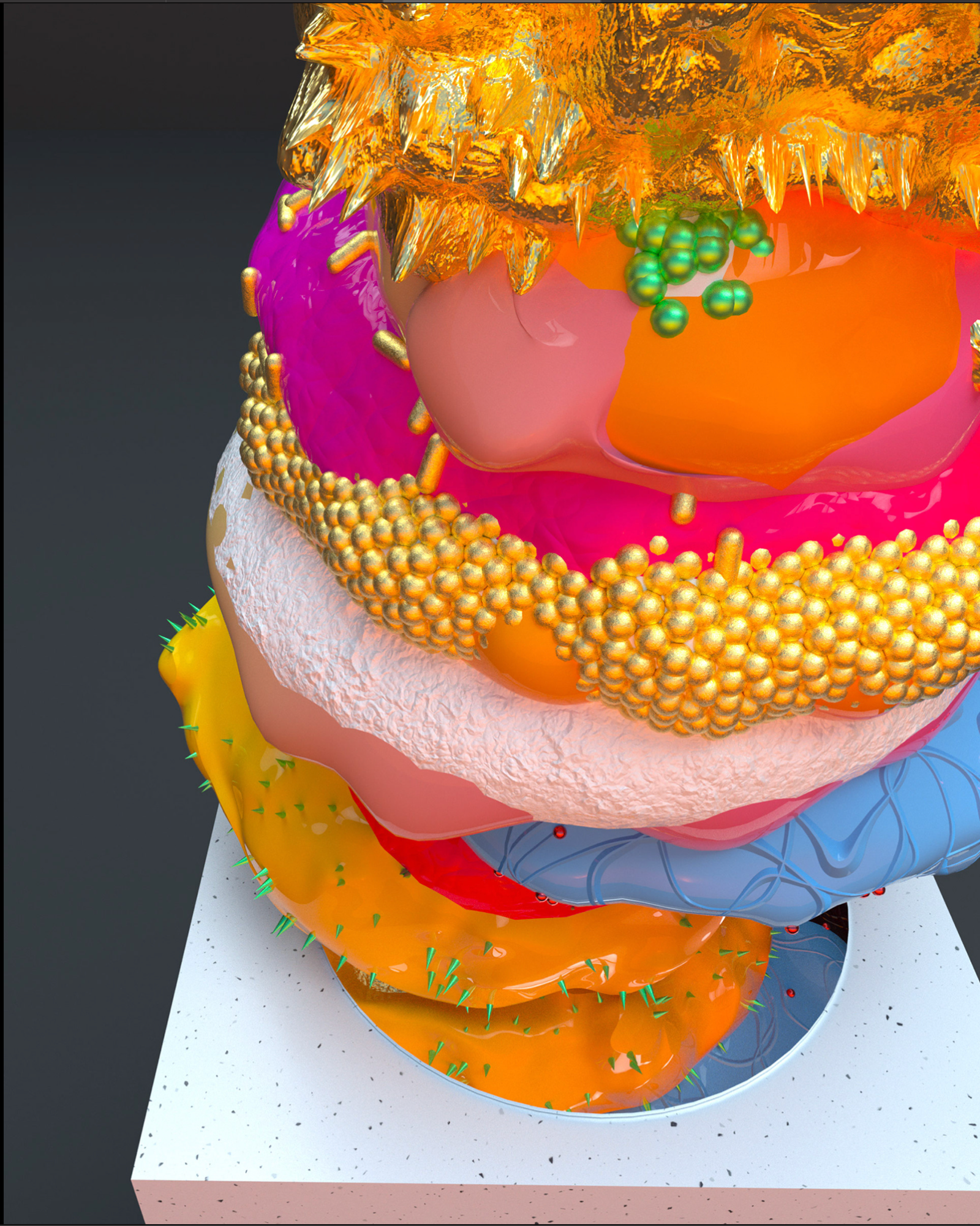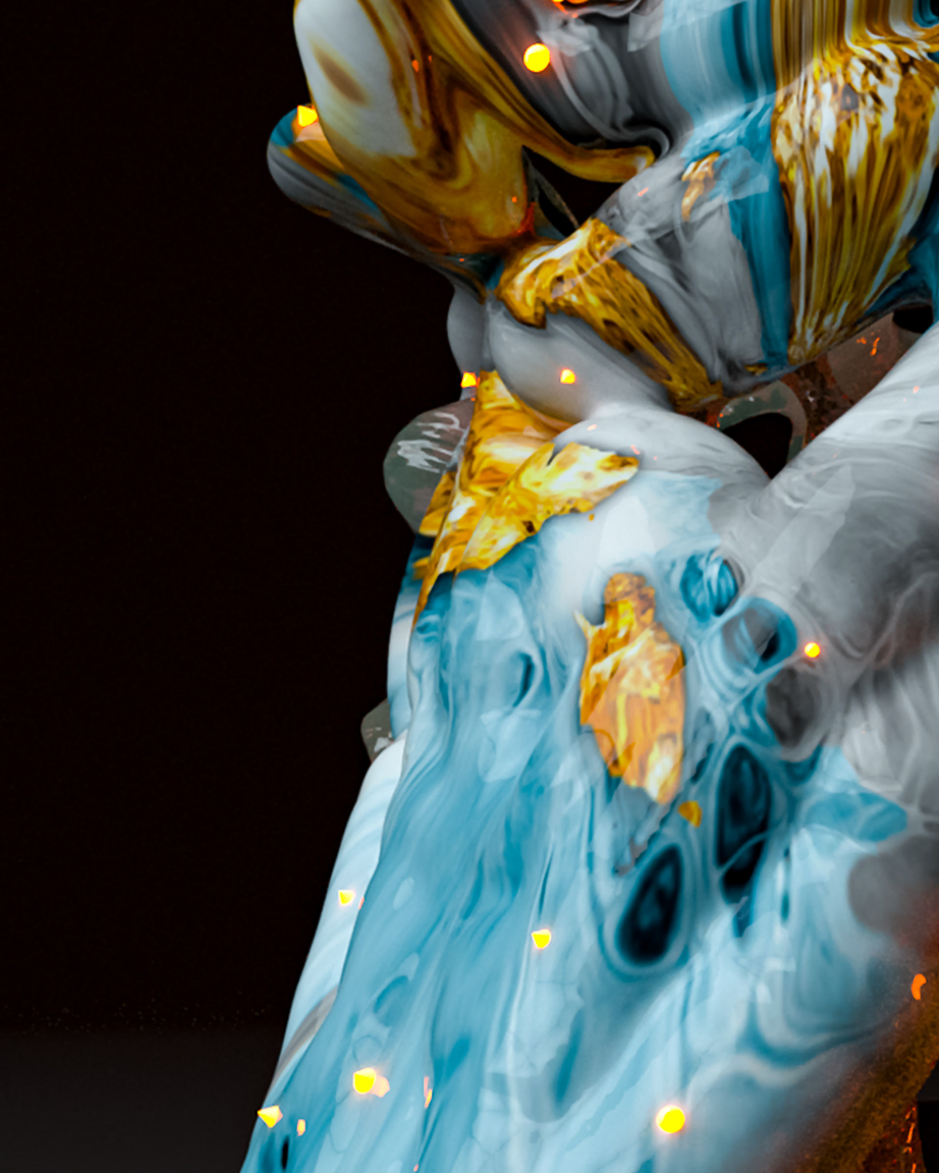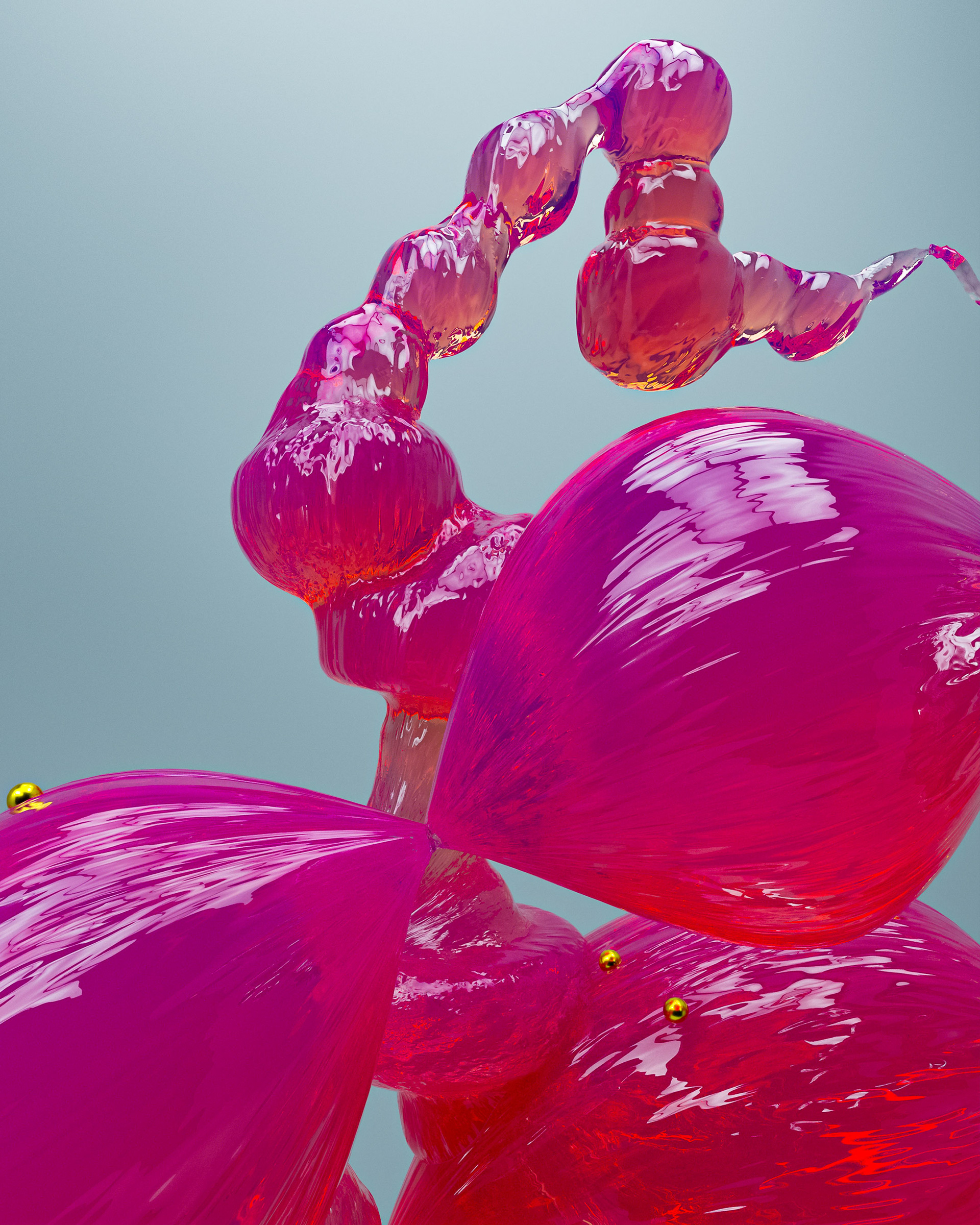 A collection of sculptures featuring juxtaposed organic and synthetic materials created with Cinema 4D and Octane render.